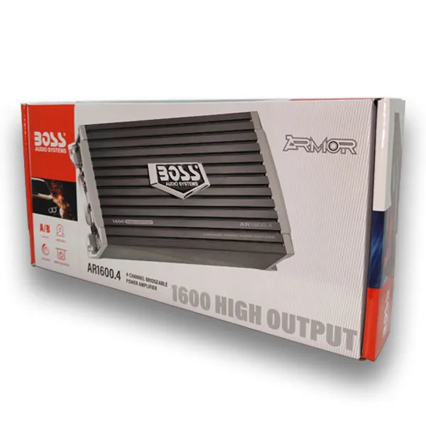 آمپلی فایر چهار کانال BOSS BE1600.4D با توان 1600 وات، کلاس AB، فیلتر HPF/LPF و Bass Boost؛ صدای قدرتمند و شفاف برای سیستم صوتی حرفهای خودرو.
